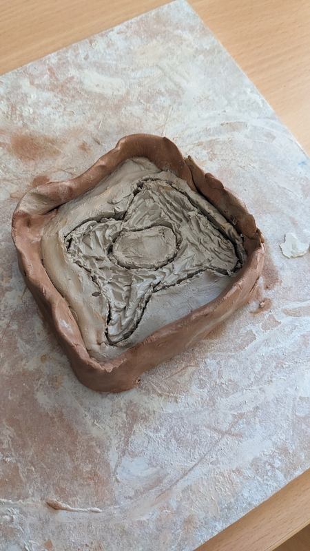 Moule en argile travaillé pour obtenir différentes textures.