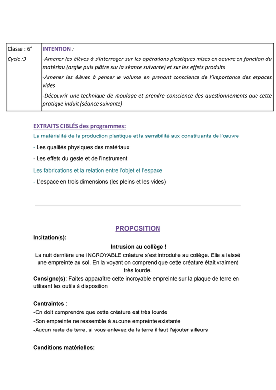 Réalisation d'une empreinte dans de l'argile