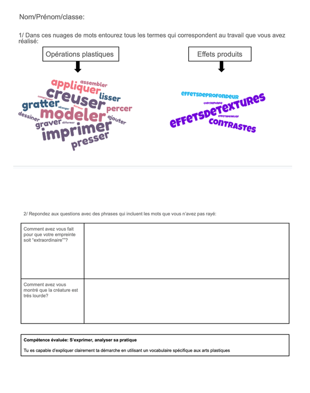 Fiche élève (verbalisation écrite)