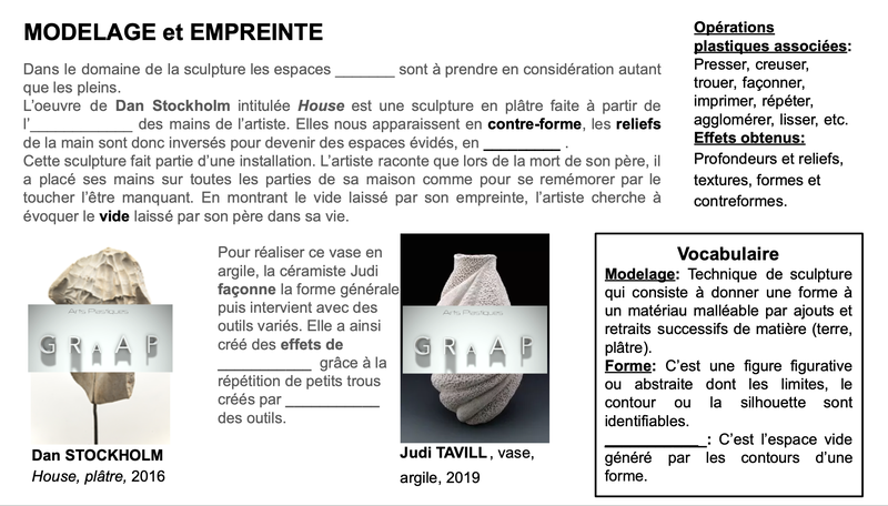 Réalisation d'un moule en plastiline.